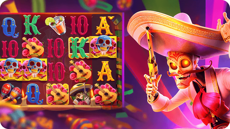 Wild Bandito — это полноценный видеослот от PG Soft, выполненный в мексиканском стиле с отсылками к народному празднику Дня мёртвых. Игровое поле — стандартная сетка 5×3, десять линий выплат. Слот запускается мгновенно в браузере, не требует ни скачивания, ни установки дополнительного ПО.